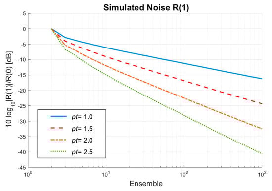 Simulated noise level as a function of the ensemble number for the pt values of 1.0, 1.5, 2.0 and 2.5 in TMAS power Doppler detection.