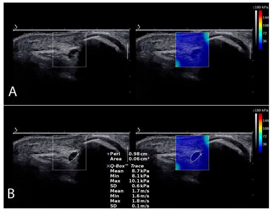 - Miyamoto, H.; Halpern, E.J.; Kastlunger, M.; Gabl, M.; Arora, R.; Bellmann-Weiler, R.; Feuchtner, G.M.; Jaschke, W.R.; Klauser, A.S. Carpal tunnel syndrome: Diagnosis by means of median nerve elasticity– improved diagnostic accuracy of US with sonoelastography. Radiology 2014, 270, 481–486. [Google Scholar] [CrossRef] [PubMed]