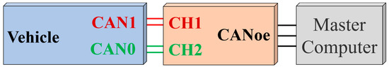 According to the requirements of the data set parameters and the preliminary analysis of the data quality, the CANoe tool is used to collect the data information of the vehicle. The test hardware scheme and the physical hardware are shown in Figure 6 and Figure 7, respectively.