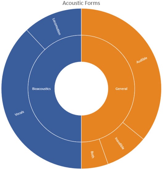 - Kvsn, R.R.; Montgomery, J.; Garg, S.; Charleston, M. Bioacoustics data analysis—A taxonomy, survey and open challenges. IEEE Access 2020, 8, 57684–57708. [Google Scholar]