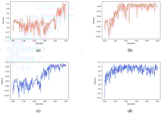 - Mnih, V.; Kavukcuoglu, K.; Silver, D.; Rusu, A.A.; Veness, J.; Bellemare, M.G.; Graves, A.; Riedmiller, M.; Fidjeland, A.K.; Ostrovski, G.; et al. Human-level control through deep reinforcement learning. Nature 2015, 518, 529–533. [Google Scholar] [CrossRef]