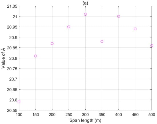 When the line was transformed in the range of 100–500 m, the maximum change rates of A, B, and C were approximately 2.04%, 3.33%, and 10.2%, respectively. A, B, and C were less affected by the span length, their values were slightly changed, and each coefficient had no evident functional relationship with the span growth.