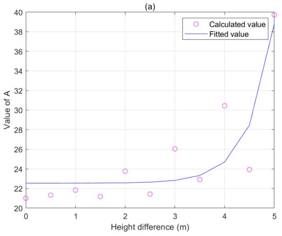 A, B, and C gradually increased as the tower height increased from 12 to 28 m. The fit curves were obtained through the approximate functional relationships between the fitting coefficients and tower height (Figure 13). For A, B, and C, these relationships can be respectively expressed as follows: