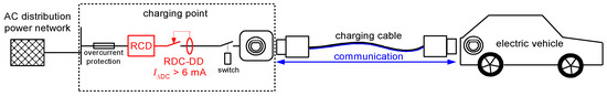 An example supply system for charging of electric vehicles. RCD—residual current device, RDC-DD—residual direct current detecting device.