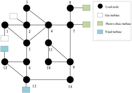 In this paper, the source–load prediction model proposed in Section 4.1 is used to predict the trend of the nodes of the typical example system. The example system is shown in Figure 2.
