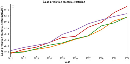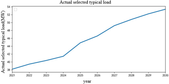 Then, K-means clustering is used to reduce the generated scenarios, and the typical load scenarios in the next 10 years are obtained. The clustering center k is 4, and the typical load scenarios in the next 10 years after reductions are obtained as shown in Figure 12. According to the obtained clustering results, a typical scene is randomly selected for analysis, and the typical scene is selected as shown in Figure 13.