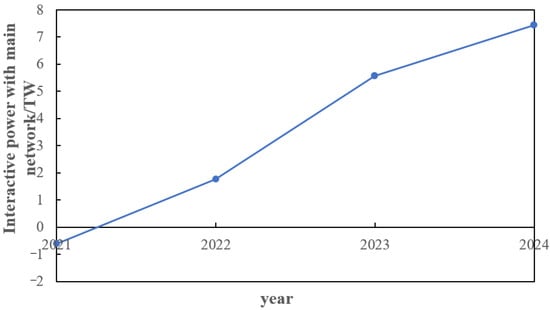 Interactive power between distribution network and main network from 2021 to 2024 years.