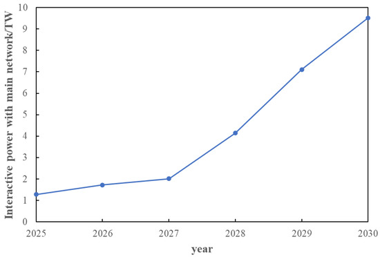 Interactive power between distribution network and main network from 2025 to 2030 years.