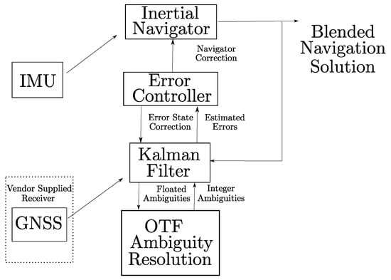 Block diagram of components within an integrated inertial system such as the Applanix POS LV-220 [].