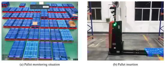 In our warehouse, we employ cameras to monitor pallets and intelligent forklifts to insert and remove pallets, as shown in Figure 1.