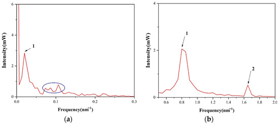 (a) Spatial frequency spectra from 0 to 0.3 nm−1; (b) Spatial frequency spectra from 0.5 nm−1 to 2 nm−1.