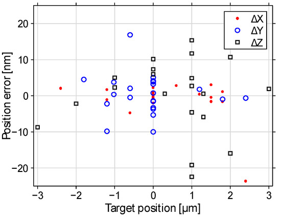 Position errors versus target position . Most individual positioning errors are within ±10 nm.