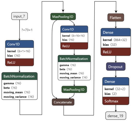 As the performance is still good, another dense layer is reduced to create a 1D CNN model with only two convolution layers and one dense layer, as shown in