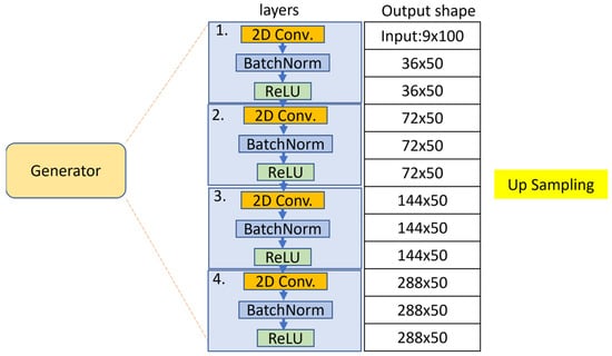 The two modules, a sequence of skeleton generator and an activities discriminator, are trained by using the G and D loss functions, respectively. The GAN training is a strategy to define a game between the generator network and the discriminator network. The block diagrams of the generator and discriminator are illustrated in Figure 6 and Figure 7.