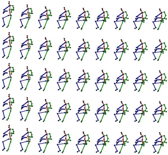 Therefore, our solution raises the accuracy of motion recognition by building a DNN model on the measurement of sensors. The synthetic action sequences generated from the IMUs are deployed on five different subjects for two seconds. We depicted the data in a visual presentation. Figure 11 shows the sitting down action generated from the GAN model, which is able to enforce the motion sequence.
