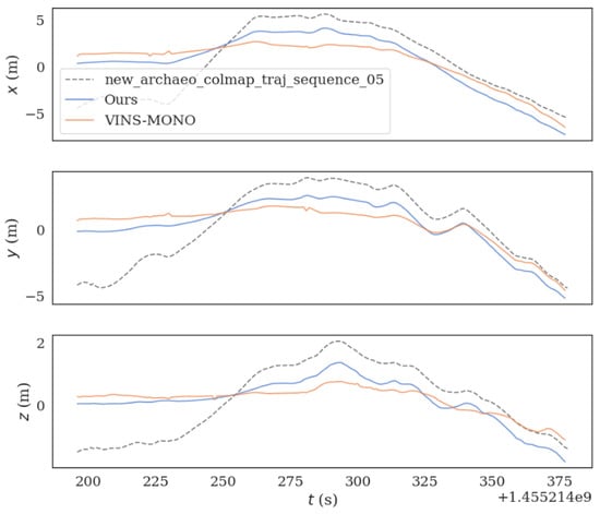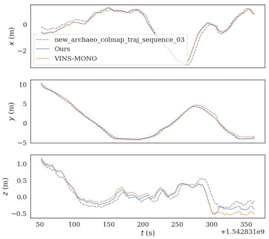 Secondly, the sequence_03.bag dataset in the underwater HAUD-Dataset is taken as an example to compare the trajectory errors, as shown in Figure 5: