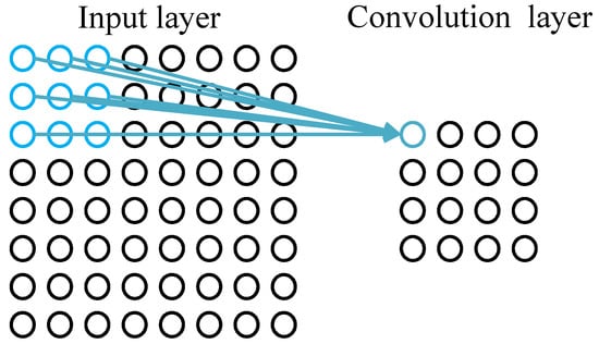 Each neuron of convolutional layer is connected with the local area of the upper layer’s feature map through the convolution kernel as shown in Figure 5. The convolution kernel is a weight matrix. The convolution layer of CNN extracts different features of input through convolution operation, the lower convolution layer extracts lower level local features, and the higher convolution layer extracts higher level global features. The convolution process is described as follows:
