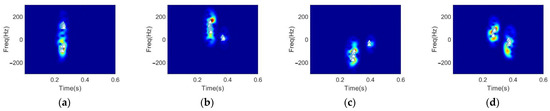 It was detailed in Section 2.2 that the time-frequency distribution of the hand gesture echo can be approximated by a group of basis signals with parameter sets , where denotes the intensity of the specific time-frequency cell . Thus, the sets in effect serve to be representative features directly related to the data content of different hand gestures. By extracting such the discrete parameter sets of the pre-designated -sparsity signal, the feature vectors can be formulated as below and utilized for subsequent hand gestures recognition.