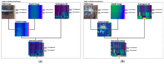 This result is assumed to be primarily due to the divergence of the feature representation spaces extracted from RGB and depth images, as well as the AE Scaleogram. Therefore, the proposed technology used a complex of different-level data fusion methods considering different scenarios of preprocessing data of diverse modalities.