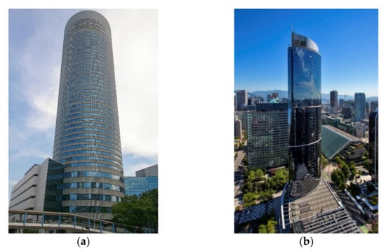 (a) Shin Yokohama Prince Hotel https://upload.wikimedia.org/wikipedia/commons/thumb/7/70/Shin_Yokohama_Prince_Hotel_20080808-002.jpg/375px-Shin_Yokohama_Prince_Hotel_20080808-002.jpg (accessed on 15 October 2022), Japan; (b) One Wall Centre in Canada (TLCD) https://upload.wikimedia.org/wikipedia/commons/thumb/7/73/One_Wall_Centre.jpg/375px-One_Wall_Centre.jpg (accessed on 15 October 2022).