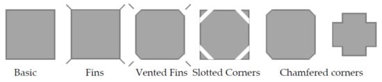 The aerodynamic control of vibrations is performed by the modification of the cross-sectional configuration of the structure. For tall buildings, aerodynamic modifications (see Figure 10) include tapering and drop-off corners, slotted and chamfered corners, setbacks, fins, horizontal and vertical through-building openings, and sculptured building tops (see Figure 11). This passive technique has been used in several tall buildings, such as the Shanghai World Financial Center and Jin Mao Tower.
