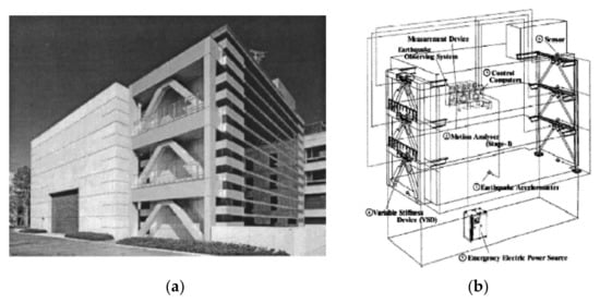 - Kobori, T.; Takahashi, M.; Nasu, T.; Niwa, N.; Ogasawara, K. Seismic response controlled structure with active variable stiffness system. Earthq. Eng. Struct. Dyn. 1993, 22, 925–941. [Google Scholar] [CrossRef]