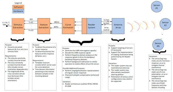 - Garbati, M.; Perret, E.; Siragusa, R.; Halopé, C. Ultrawideband Chipless RFID: Reader Technology from SFCW to IR-UWB. IEEE Microw. Mag. 2019, 20, 74–88. [Google Scholar] [CrossRef]