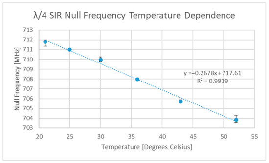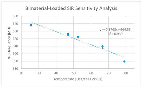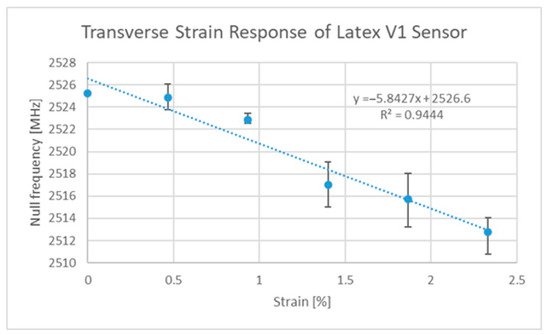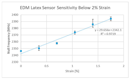 | Strain gauge operating temperature: −150 °C to +250 °C | This operating temperature range is not uncommon amongst some aerospace applications [3,4]. Some dielectrics can cause variations on the order of 0.5–1 MHz/°C [5] | 200–400 MHz | |