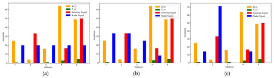The radar signal and the jamming signal are equally divided into sub-bands in the frequency domain, and the sub-band power is equally divided into parts; i.e., the individual signal is modelled as an array consisting of numbers, as shown in Equation (8).
