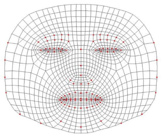 Face detection is complicated owing to the different variability of human facial presence, such as pose, position and orientation, expression, complexion, frontal face objects (e.g., glasses, hairstyle, and beard), and external objects, such as differences in camera gain, lighting conditions, and resolution. Most researchers [12,13] have shown that precise landmarks are essential for achieving an accurate face recognition performance. Face detection is connected to image processing and computer vision interrelations with the instant detection of human faces. The first step in face recognition involves setting a face location in the image. In [14], face localization was conducted by finding the nose tip and then segmenting it by cropping the sphere centered at this tip. After face detection and segmentation, landmark localization is frequently used for face analysis. Many existing proposed techniques rely on the accurate localization of the corresponding landmarks or regions to achieve a rough alignment of meshes [15]. Landmark localization of facial features can be achieved by first locating the facial feature region of interest (RoI). Kakadiaris et al. [16] conducted face recognition with an annotated model that was non-rigidly registered for face meshes with an initial orientation of the face. There are several categories of facial landmark detection methods—holistic, co-strained local model (CLM), and regression-based [17] approaches. The most commonly used holistic method is the active appearance model (AAM) [18]. With regard to the CLM method, the most well-known model is the active shape model (ASM) [19]. Both models have several advantages. The ASM is more accurate in the case of point or contour localization and is less sensitive to fluctuations in illumination. Therefore, the ASM is relatively effective and suitable for applications that require precise contours. According to the anthropometric landmark distance measurements, the upper part of the facial key points contained only the eyebrows. The most likely landmark location approach treats the finding of a landmark as a two-class classification problem, such as a site, regardless of whether a location in an image is a landmark.