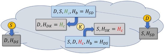 Imagine node K picking up a packet sent by node S and addressed to node D, as illustrated in Figure 2. According to Section 4.3, the packet identifies the source S, the destination D, and the number of hops taken by the packet so far. K sets and stores the pair <> in a cache. The node has learned that it can be reached by S in hops. Owing to the DD rule, operating before SPD, tends to reflect the smallest number of hops via which K can be reached from S at the time. Similarly, when K sees a packet dispatched by node D it will store in the SPD cache the respective pair <>. Note that only the packet’s source matters for updating the SPD cache.