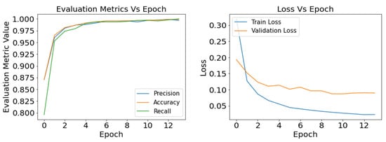To achieve the best output result, the values of hyper-parameters for CNN classifiers are designated after carefully analyzing the learning process. According to Table 2, a batch size of 10 is considered, and the models are trained for 100 epochs. An epoch refers to the one complete training cycle of a forward pass and backpropagation. To finalize the epoch size, two functions called early stopping and the reduced learning rate is applied in these models. These two functions help the models avoid over-fitting by stopping the model’s training process when the best accuracy is achieved. This also helps reduce the models’ computational costs (time and computer memory). After completing all the combinations of sensitivity analysis, it is found that the models reach their optimized performance condition within the 100 epochs. Therefore, this study considered 100 epochs for model training. Moreover, for batch size, it is observed that with a group of 10 images, the model learns the features with a minimal computational cost. Moreover, as an activation function, ReLu performed to have a positive impact on the model’s performance. According to some previous studies, SGD and RMSprop are some commonly used optimizers to train the CNN models [,,,]. Moreover, some studies used a learning rate of 0.001 [] and 0.0001 [] to control the learning process of the CNN model to achieve the best performance. Hence this study explored two different optimization functions: SGD and RMSprop along with three different learning rates 0.1, 0.001, and 0.0001 for each of the five models separately and summarized the results in Section 3. Finally, the best hyper-parameters values are decided on by evaluating the trained model with the testing dataset and comparing their results using the evaluation matrices.