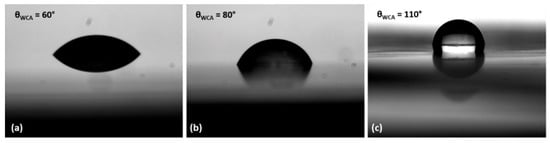 Sessile drop testing has been used for water contact angle θWCA measurements on a software with a drop shape analysis software [29]. Three measurements were analyzed for the films fabricated from three different concentrations of sucrose (5 wt%, 10 wt% and 15 wt%).
