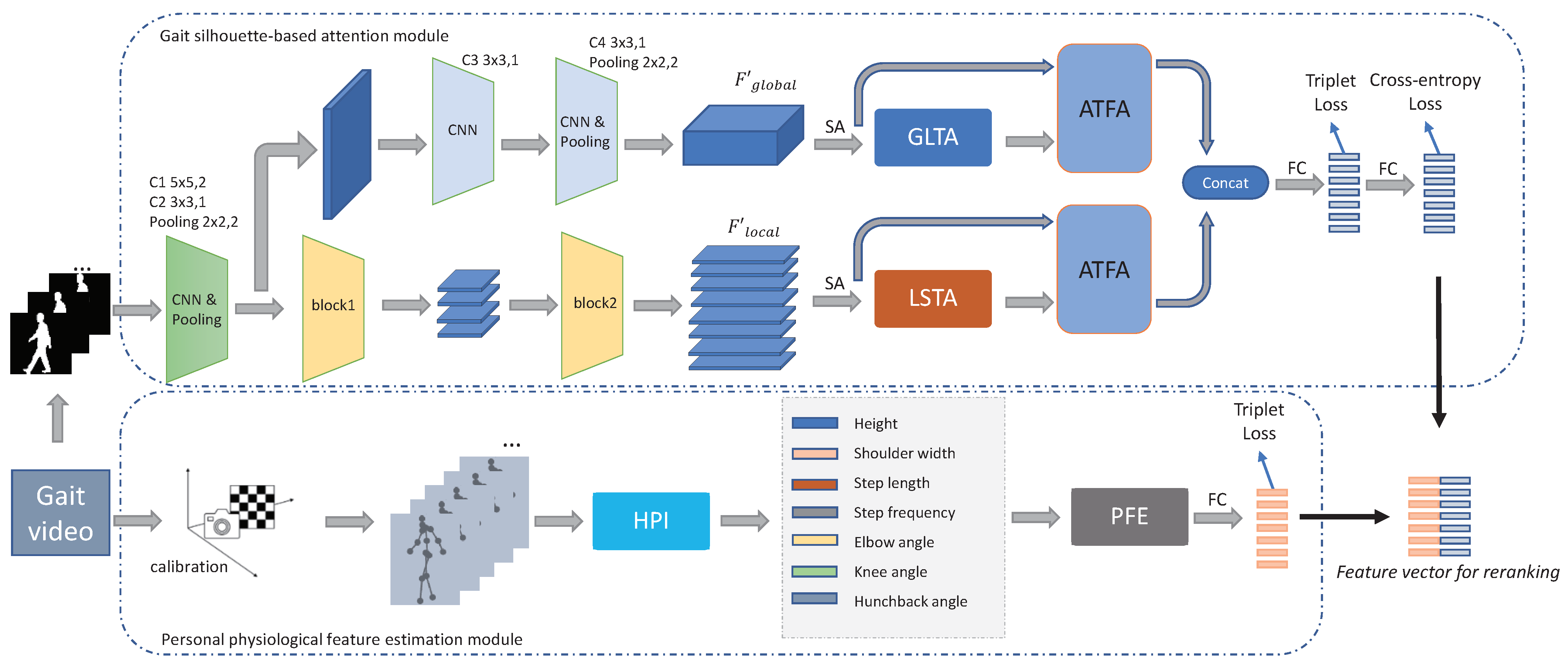 Hua, C.; Pan, Y.; Li, J.; Wang, Z. Gait Recognition by Combining the Long-Short-Term Attention Network and Personal Physiological Features. Sensors 2022, 22, 8779. https://doi.org/10.3390/s22228779