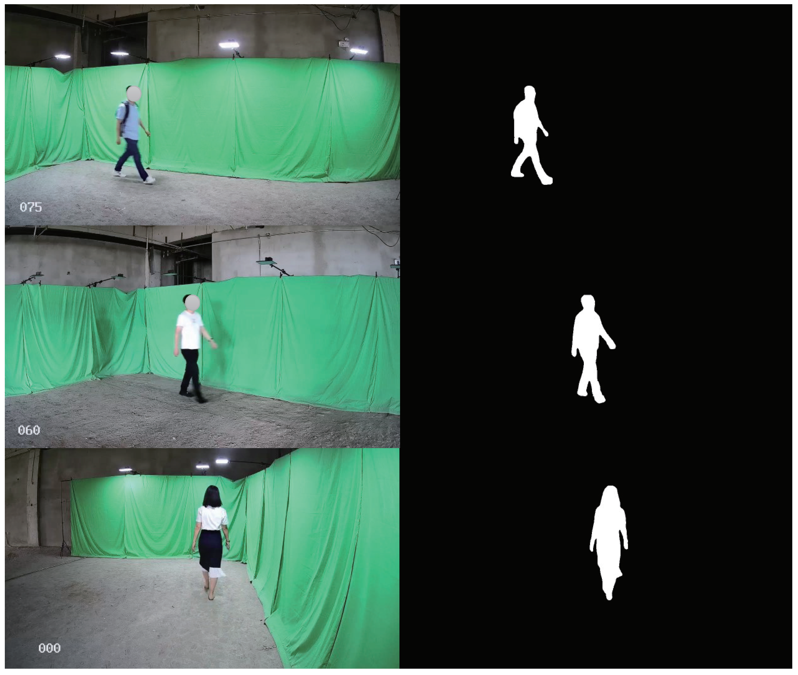 - Liu, J.; Zheng, N. Gait history image: A novel temporal template for gait recognition. In Proceedings of the 2007 IEEE International Conference on Multimedia and Expo, Beijing, China, 2–5 July 2007; IEEE: Beijing, China, 2007; pp. 663–666. [Google Scholar]