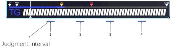 In this experimental scenario, there is a single dynamic process channel in the human visual field. In order to judge the good or bad effect of tracking and positioning more precisely, the overall area of the channel is divided into five parts. After discarding the endpoint and the starting point, there are four quintile points in the middle area. These points are taken as recording points, and a very small area (±5 cm) around the recording points is taken as the judgment interval, and when the cursor falls in the interval, the subject can both consider the state as operable, as shown in the following Figure 5.