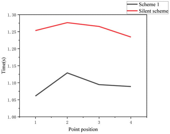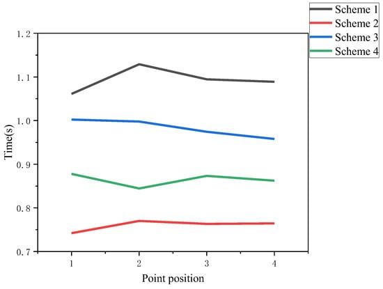Analyzing the above data, the time averages of scheme 2, 3, and 4 decreased by 30.49%, 10.09%, and 20.93%, respectively, compared to that of scheme 1, and scheme 2 where it is less difficult to implement and use less equipment than the more efficient scheme 3 at the same time. Therefore, scheme 2 has the best prompting effect, followed by scheme 4 and scheme 3, and scheme 1 has a slightly inferior prompting effect.