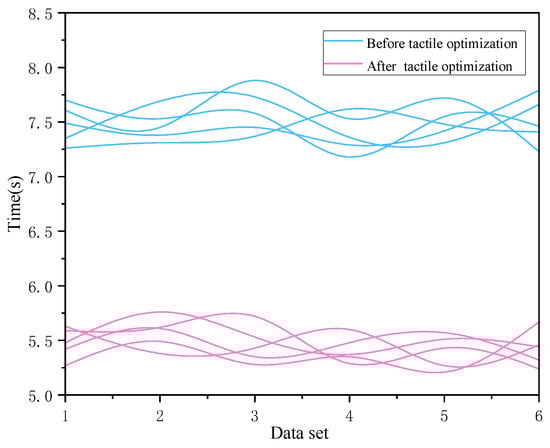Analysis of variance was performed on the time data before and after the above optimization, the reaction time of the experimental group with a tactile cue (M = 5.45, SD = 0.15) was significantly lower than that of the experimental group without a tactile cue (M = 7.49, SD = 0.18), t(29) = 54.88, p = 0.000 < 0.05, d = 10.02, This effect data is large.