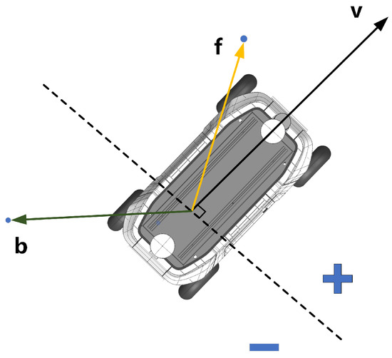 A vector product is used to represent the position of a point in relation to the robot. If the vector product of the body direction vector and vector formed by the selected point and the robot center of mass is negative, the picked point is considered to be behind the robot, i.e., Point b in Figure 5. The reference heading of the local target is corrected by judging this condition, so as to keep the heading of the planning start and the planning end consistent. The workflow for handling reversing is shown in Algorithm A1 in Appendix A, which indicates the corresponding processBackward module in Figure 1.