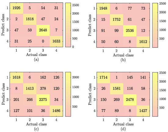 As shown in Table 1, with the increase in the principal components, the increase in the contribution rate gradually decreases. When there are four principal components, the cumulative contribution rate reaches more than 99%. The four principal components explain more than 99% of the total variance. Thus, the original data can be reduced from 16 to 4 dimensions to represent the original features in this paper. After the data is reduced by PCA, the sample order of the classification dataset is randomly shuffled. According to the ratio of 8:2, this is divided into training sets and test sets.