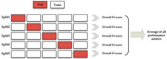 Cross-validation necessitates preserving some data that were not used to train the model so that it may be tested and validated later. The input dataset is divided into K equal-sized subsets for the k-fold cross-validation method. The prediction function uses k-1 folds for each training set, keeping the rest folds for the test set. K-fold cross-validation separates the dataset into K distinct subsets (See Figure 9). The size of the data set determines the value of K, and one part of the dataset (out of k total) is utilized for testing, while the rest is used for training.