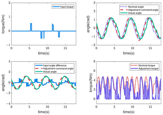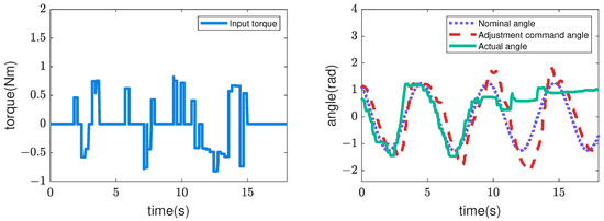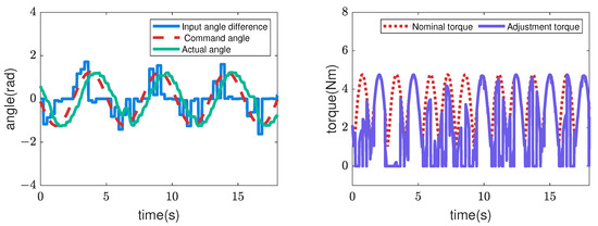The individual parameters of the controller are set, as shown in Table 3. The PID controller of the servo motor is set to the PD controller, i.e., the integral controller is set to 0. The proportional gain and derivative gain of the PD controller of the servo motor, the parameter values of the controller, are determined by the trial-and-error method within the range of the values taken. We filter out the input torques below [Nm] to remove the noise when using the admittance control to adjust the nominal position. Similarly, we filter out the input angles below [rad] to remove the noise when adjusting the nominal torque using the impedance control.