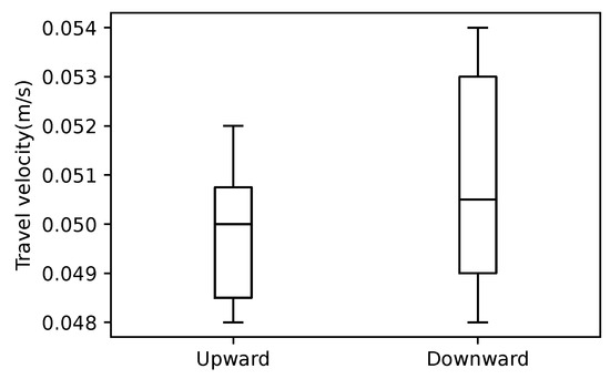 Velocity comparison of 10 upward motion experiments and 10 downward motion experiments.