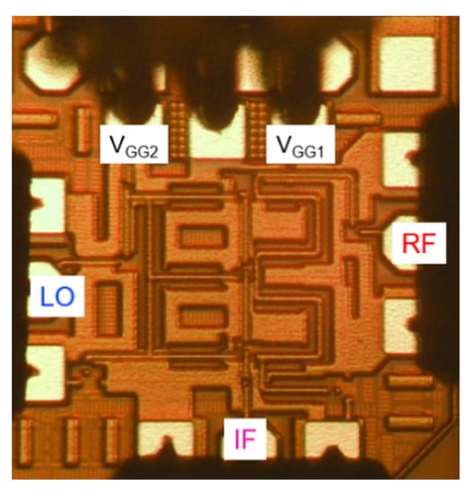 - Kim, J.; Kwon, Y. Low Conversion Loss 94GHz CMOS Resistive Mixer. Electron. Lett. 2015, 51, 1464–1466. [Google Scholar] [CrossRef]