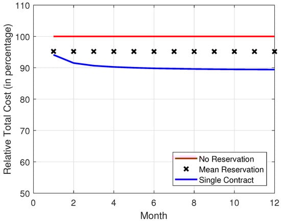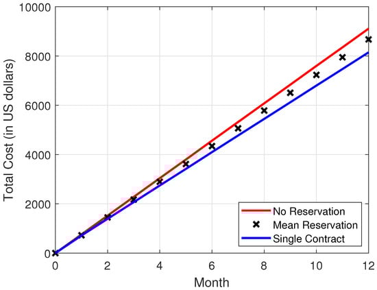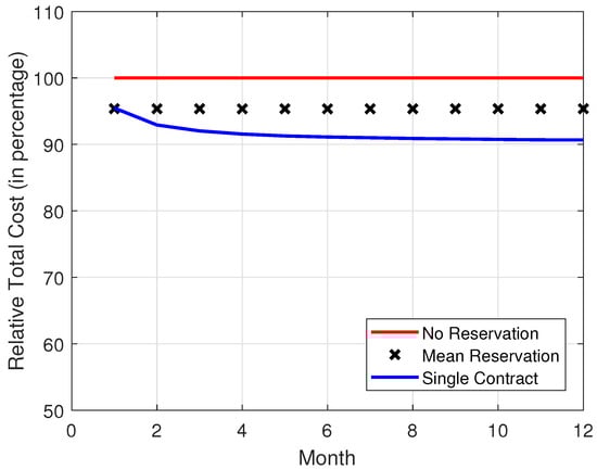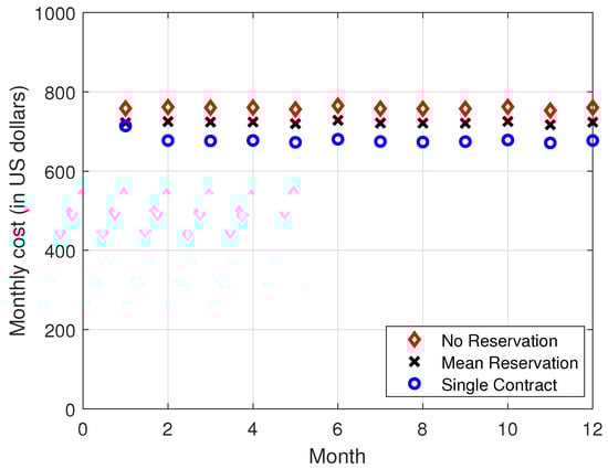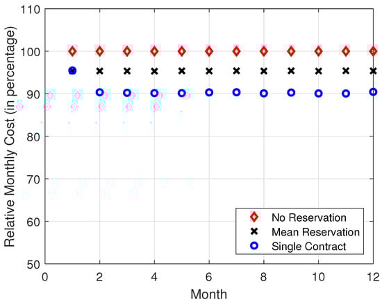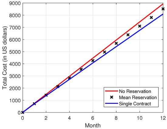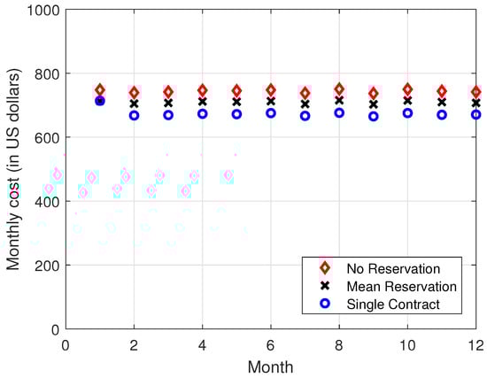 Our mean-resource reservation policy (MRRP) was almost the same structurally as the realistic reservation and scheduling with spot price (RRS-SP) in []. In fact, the MRRP was better because it considered 12-month average of demands while the RRS-SP considered just a 1-month average. Therefore, we did not compare our policies with the RRS-SP.