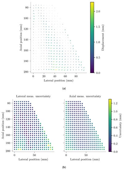 The means and standard deviations of the tracking displacements, repeatabilities and signal-to-noise ratios were then taken across the three repeat measurements, with the standard deviations indicating the measurement uncertainty.