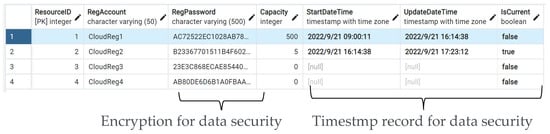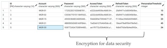 The trained model was deployed as a RESTful application programming interface (API), which could be used in edge-based or cloud-based analytics for PdM. The data analytics process is fully automated after the client sends the analytics requirement to the server via the API. The submission is detected by the server-side process and automatically imported to the trained model according to the API message. The server-side response to the analytics results are sent to the client side, which sends an API request for automatic notification. The data communication involved with the original data, or the analyzed data in this study to meet the different requirements notification. The notification can be normalized and generalized; this study provides the personalize threshold value for notification and the default value for general use. Figure 9 demonstrates the encoded personal identification and the corresponding notification threshold value. This study encrypted the API user password using the MD5 algorithm. For the maintenance of API security, this study provided the encrypted API token for the user to access the services after the user’s login details passed validation. When the user’s access token has expired past the authorized period, this study provided a refresh token for the user to obtain a new access token instead of logging in again.