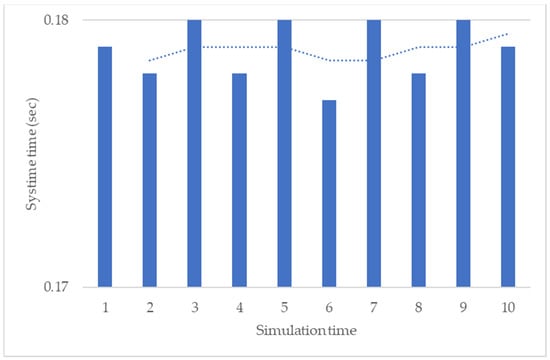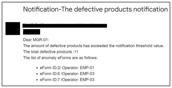 The automatic notification triggers when the real-time value exceeds the threshold value. When the data value achieves the threshold value or the predicted the potential defective event occurrs, then the data or the predicted event transmits the proposed resource-dispatching approach. Figure 10 shows the average system time with the 10-time repeated simulation; the mean of system time is 0.178 s, which means that the proposed method can quickly respond from the data to the user. Figure 11 shows that the registered third-party resources were stored in the resource pool for the proposed dispatching approach to be arranged in the data communication. The transmitted data obtained the arranged third-party emailing resource. This study organizes the transmitted data into notification content and the emailing of the notification using the arranged resource. Figure 12 shows that emailing can be correctly sent to the user using the arranged resource. One thousand simulation data points and seven emailing resources were applied in the system simulation and the data was arranged according to the corresponding emailing resource using the proposed resource dispatching approach.