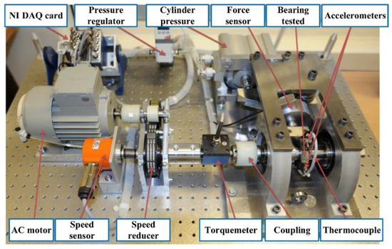 - Nectoux, P.; Gouriveau, R.; Medjaher, K.; Ramasso, E.; Chebel-Morello, B.; Zerhouni, N.; Varnier, C. PRONOSTIA: An experimental platform for bearings accelerated degradation tests. In Proceedings of the IEEE International Conference on Prognostics and Health Management, Denver, CO, USA, 18–21 June 2012. [Google Scholar]