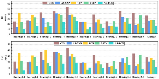 The MAE and RMSE results of the six models. (a) RMSE. (b) MAE.